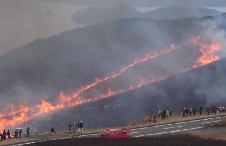防火と若草の育成を目的とした野焼きが、川内峠で行われます。約30haの草原が燃…
