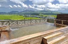 北外輪山、大観峰(標高936m)の麓、阿蘇谷の田園風景のまんなかに湧く内牧温泉…