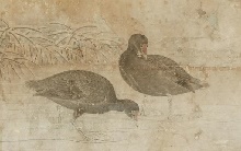 二の丸御殿障壁画(重要文化財)の原画を保存する展示収蔵館で、秋期の原画公開が行われます。2025年度のシリーズである「転調の花鳥」のテーマに沿って、「〈黒書院〉の秋~〈黒書院〉四の間~」と題し、将軍と徳川家に近しい人物との対面に使われた棟で、小広間とも呼ばれる黒書院の四の間の障壁画《菊図》と《秋草扇面散図(あきくさせんめんちらしず)》が公開されます。障壁画は、長押(なげし)上にススキ野原に舞う扇面、長押下に大輪の花を咲かせる菊が描かれており、曲線的なススキと扇、直線的な菊の2つの対照的な“秋”の景物を鑑賞することができます。