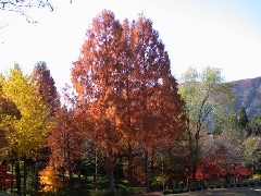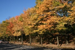 多種多様な樹木が植えられている石川県林業試験場内の樹木公園では、例年11月上旬から下旬にかけて紅葉が見頃を迎えます。ブナ、メタセコイヤ、ヤマモミジなどが、赤や黄色に色づき、園内を秋色に染め上げます。芝生広場を中心に、花木園や針葉樹林、桜椿園、日本庭園などが配置されており、秋の訪れを感じながら散策も楽しめます。10月頃に見頃を迎えるカツラ並木もあります。