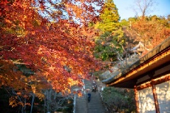 標高695mの鳳来寺山は、火山噴火によりできた山で、紅葉の名所としても知られます。例年11月中旬になると紅葉が見頃となり、観光客らで賑わいます。鳳来寺山の中腹には「鳳来寺」や「東照宮」があり、1425段の石段を登って参拝することができます。鳳来寺の山門(仁王門)をくぐるとそびえ立つ樹齢800年の「傘すぎ」は、60.8mの樹高を誇ります。鳳来寺山は、山全体が国の名勝・天然記念物に指定されています。11月1日から30日にかけて「鳳来寺山もみじまつり」が行われ、11月23日には鳳来寺山表参道でイベントなどが催されます。