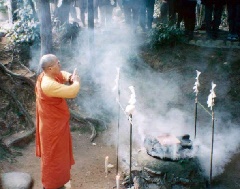 平安時代の歌人、在原業平が晩年を過ごした十輪寺で、業平を偲び「塩竈祭」が催行されます。業平は思いをよせた藤原高子に、大原神社参詣の折に塩を焼き紫煙を上げて、その思いを伝えたとされます。1000年経った現在では、これが業平信仰の儀式として行われ、恋愛結婚成就、ボケ封じ、中風除けなどが祈願されます。当日は、参拝者の中から諸役を選んで執り行われます。十輪寺では、例年11月下旬になると、紅葉も見頃となります。