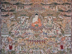 中将姫により織られたものと同じ手法「綴織(つづれおり)」にて再現された當麻曼陀羅平成本が、當麻寺奥院で特別に公開され、約1250年前の中将姫の苦労と思いを間近で見ることができます。「蓮糸曼陀羅」とも呼ばれる當麻曼陀羅は、中将姫が現世に極楽浄土の様相を伝えようと蓮の茎を集め、茎から取り出した糸を紡いで織り上げたもので、現在も多くの人々の信仰を集めています。期間中は、綴織の特徴や當麻寺の歴史、當麻曼陀羅の内容などの説明もあります。
