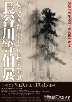 能登半島地震からの復興と、開館30周年記念を祝し、「長谷川等伯展~帰ってきた国宝・松林図屏風~」が石川県七尾美術館で開催されます。能登七尾出身の長谷川等伯(1539~1610年)の最高傑作である国宝「松林図屏風」をはじめ、大地震の中で奇跡的に救出された作品や被災寺院所蔵の能登時代作品など19点が、《能登時代の長谷川等伯》、《松林図を中心とする水墨画の表現》、《晩年水墨画への展開》の3テーマに沿って公開されます。