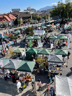伊勢神宮の外宮前広場周辺で、伊勢志摩の名品や特産品が並ぶ「伊勢楽市」が開催されます。例年、春と秋の年2回行われ、約50店舗が軒を連ねます。伊勢はこの2日間、より一層多くの人で賑わいます。