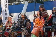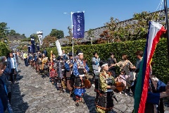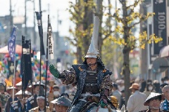 「商都・松阪」の礎を築いた、戦国時代から安土桃山時代にかけての戦国武将、蒲生氏郷(がもううじさと)を讃える秋の大祭が、松坂城跡および中心市街地で開催されます。馬上の氏郷公を中心とした甲冑姿の武士や鉄砲隊など、総勢約200人の武者行列が市内を練り歩き、歴史ロマンあふれる時代絵巻の世界へと誘います。