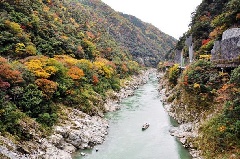国の天然記念物に指定された吉野川の大歩危を、遊覧船で下りながら、シーズンを迎えた紅葉を観賞できます。断崖の奇岩巨岩と、赤や黄色に鮮やかに色付いた木々とのコントラストが見事です。徳島県天然記念物の含礫片岩(ガンレキヘンガン)を川面から見上げることができるほか、川の水の美しさもすぐ身近に感じることができます。大歩危の景観がひときわ美しい、紅葉の季節ならではの絶景を堪能できます。