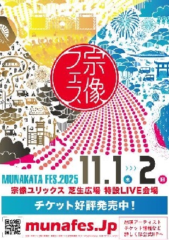 九州最大級のローカルフェス「宗像フェス2025」が、宗像ユリックスの芝生広場で開催されます。2025年は野外音楽フェスのスタイルが復活し、特設ステージで豪華アーティストによるライブが行われ、会場を盛り上げます。こだわりのフェス飯が堪能できる飲食ゾーンも設けられます。フェスの最後には、世界花火師競技会優勝の実績を持つ、九州が誇る花火師「Wakino Art Factory」による音楽花火が打ち上げられます。フェスに出演のアーティストの楽曲と花火をシンクロさせた芸術花火で、夜空が華やかに彩られ、最高の思い出となる感動のフィナーレを飾ります。