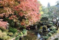 津和野の山間にある堀庭園では、例年11月上旬になると紅葉が始まります。かつて石見銅山で繁栄した豪族堀氏による名園で、書院造りの客殿「楽山荘」の2階から中央に望む庭園が美しく、赤や黄に染まる裏の山も彩りを添えます。10月31日から11月3日には、夜間ライトアップが予定されています。