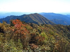 スーパー林道天竜線沿いの、約95haにわたって広がる天竜の森では、カエデ類やブナ、ヒメシャラなどの落葉広葉樹林が色づく様子が見られます。竜頭山山頂付近の展望台からは、ところどころが赤や黄に色づいた秋の山肌を楽しむことができます。