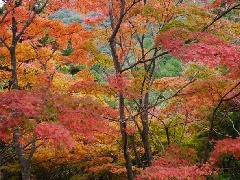臼杵川の上流に位置する白馬渓では、例年11月中旬になると紅葉が見頃となります。白馬渓は、自然の渓谷に奇岩奇石を組み、道を開き、石橋を架けて造られた景勝地で、秋になると、谷間に植えられた数百本のモミジが色とりどりに渓谷を彩ります。昭和53年(1978年)に、臼杵市の名勝文化財にも指定されています。