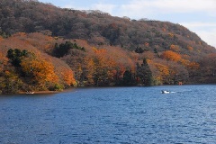 箱根外輪山にぐるりと囲まれた芦ノ湖では、例年11月上旬になると、湖畔を散策しながら紅葉狩りが楽しめます。芦ノ湖ができたのは約3000年前で、神山の噴火の際に、カルデラの中を流れていた早川が、土砂崩れによってせき止められたことにより形成されました。遊覧船の上からも、赤や黄に色づいた木々を見ることができます。