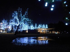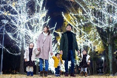 約250m続くイチョウの並木道「学びの森プロムナード」で、イルミネーションが開催されます。イチョウ並木と公園内のカフェ周りに約10万球を超えるLEDが施され、ロマンチックな雰囲気に包まれます。冬の夜空の下、白くきらめく光の中で散策を楽しむことができます。