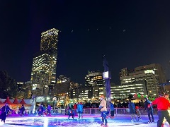 天王寺動物園ゲート前にある天王寺公園エントランスエリア「てんしば」に、冬期限定のアイススケートリンク「てんスケ」が、登場します。家族や友人、カップルなど、冬ならではの屋外スケートを楽しむ人で賑わいます。夕刻からはリンク全体がライトアップされ、幻想的な雰囲気に包まれます。天王寺駅からすぐとアクセスも良く、スケート靴や補助いす(いずれも有料)のレンタルもあるので、気軽に立ち寄ることができます。