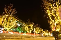 長野駅から善光寺へと続く表参道が、幻想的な光に包まれます。初日はオープニングセレモニーが催されます。長野駅善光寺口駅前広場では、12月25日までクリスマスツリーが点灯し、冬の夜を華やかに演出します。