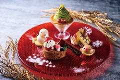 ホテルオークラ京都周辺の街路樹がイルミネーションで彩られ、冬空のもと美しく輝くLEDの光により、幻想的な雰囲気に包まれます。ホリデーシーズンには、館内にクリスマスツリーも登場します。各レストラン、カフェが提供するクリスマスメニューや、テイクアウトのクリスマスケーキ、オードブル、ローストチキン、ローストビーフなども充実しています。