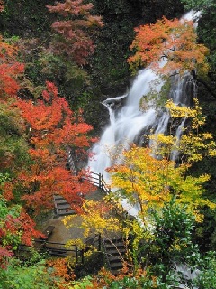 野口雨情が滝の美しさを詠んだことで知られる白滝公園は、全国有数の紅葉スポットとしても知られます。「秋の白滝、木と木の紅葉、山に錦の幕を張る」と雨情が絶賛するように、豪快な流れを見せる雄滝、数段にわたり優雅に流れる雌滝といった7つの滝を巡りながら、錦秋の絶景を愛でることができます。散策路が整備され、ベンチなどの休憩場所も設けられているので、ゆっくりと秋の行楽を楽しめます。11月16日は「滝まつり」、23日は「るり姫まつり」が予定されています。