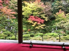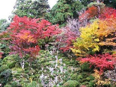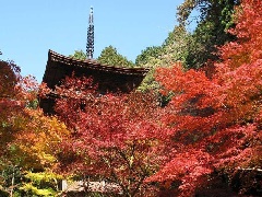 聖武天皇の勅令により行基菩薩が開山した金剛輪寺では、例年11月中旬から12月上旬かけて、ヤマモミジやイロハカエデなどの紅葉が鮮やかに色づき、山内全体が華やかな雰囲気に包まれます。特に本堂周辺や庭園の深紅に染まる紅葉は、「血染めの紅葉」として有名です。行基が本尊の聖観世音菩薩を刻んだ際、木肌から一筋の血が流れ落ち、魂が宿ったと言われることから、この名で呼ばれるようになりました。11月1日~12月7日は「日本最古の大黒天半跏像(重文)特別公開」も行われ、日本最古といわれる秘仏の大黒天半跏像を拝観することができます。