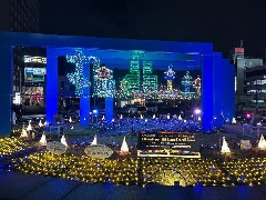 冬のJR丸亀駅前を明るく彩る「駅前ライトアップ」が、2025-2026年は「丸亀・LUMINA」をテーマに開催されます。ブルーとシャンパンカラーを基調とした約1万5000個のLEDにより、駅前の南口広場にある花壇が、さまざまな色の光で美しく装飾されます。地元の学生たちが制作したオブジェや、保育所や幼稚園の児童たちによるランタンも設置されます。