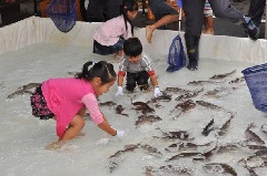 “佐世保の水産ブランド勢ぞろい!!”をテーマに、「お魚まつり」が開催されます。年に一度のセリ場一般開放をはじめ、恒例のお魚つかみ取り、模擬セリ、マグロ解体即売など、多数のイベントで盛り上がります。見て、触って、味わって、お魚について学ぶことができる機会となっています。