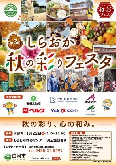 秋の白岡市を盛り上げる「しらおか秋の彩りフェスタ(秋彩(あきいろ)フェス)」が、しらおか味彩センターおよびその周辺で開催されます。忍者ショーやマグロ解体ショーをはじめ、アルパカやポニーとのふれあい、鷹やフクロウを腕にとめての写真撮影、鷹匠によるフライトショーのほか、新鮮野菜や特産品の梨が入った絶品スイーツの販売もあります。キッチンカーの出店や、白岡グルメの「シラオカ麺」と「しらおかの恋人」も見逃せません。