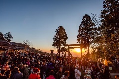 古くから「大山詣」で親しまれる大山阿夫利神社は、初詣とともに初日の出が拝める神社として、正月三が日には約7万人が参詣します。標高1252mの山頂にある本社、700mの中腹にある下社のどちらからも雄大な眺望が広がります。元日の5時から奉幣祭が、1月3日には元始祭が執行されます。