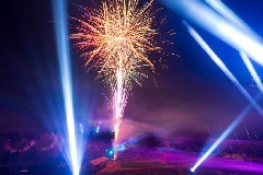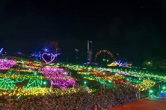 広大な敷地を有する「みろくの里」で、恒例のウィンターイルミネーションが開催されます。2025年は「~結(ゆい)~」をテーマに、250万球のLED電球を使用した中国地方最大級のイルミネーションと、光る大型アトラクションにより、夜の遊園地が彩られます。今夏のプール営業時に拡張されたエリアに新設のミラーボール5台による演出と、しばふ広場全面に装飾されたLED電球とレーザーによる演出とが連動し、パワーアップしたショータイムが楽しめます。週末の打上花火では、音楽と光の演出が連動した花火+レーザーショーが行われます。アーティスト企画「MIROTIC ARTIST」の第5弾として、Saucy Dogとのコラボ演出も必見です。