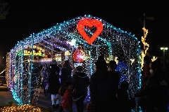 鉄道記念公園にイルミネーションが施され、志布志の街を彩ります。鉄道公園のSL、樹木を飾る14万球のイルミネーションは鹿児島県下最大級で、中でも電飾が壮大な蒸気機関車は見る人の目を楽しませます。大切な人とくぐると、幸せになれるといわれる光のアーチも登場します。