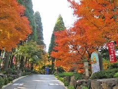 平成2年(1990年)開山の真言宗の寺院、不動山青隆寺では、例年11月下旬になると200本を超す木々が鮮やかに色づきます。約3万坪の敷地には僧侶が作庭した見事な日本庭園が広がり、35tの巨石をはじめとする多くの石や苔、数百年前の石燈籠が配され、紅葉と見事なコントラストを織り成します。標高300m地点にあるため、温暖な指宿では珍しい紅葉スポットとして知られます。カフェもあり、秋の景色を感じながら、ゆっくりと流れる時間を楽しむことができます。