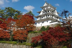 郡上八幡城の白亜の天守閣に紅葉が映える中、城下一帯で「もみじまつり」と題し、期間中の週末を中心に催しが行われます。風格あるお城と紅葉を背景に、郡上八幡城会場では、火縄銃の演武、和太鼓の演奏などがあるほか、城下町プラザでは、新鮮朝市や郡上八幡限定の土産の販売などが催されます。11月21日から30日まで、「天空のもみじ庭園ライトアップ」と夜間特別開城が同時開催されます。約50基以上の照明により幻想的に照らし出され、燃えているかのように真っ赤なもみじが天守閣を包み込む様は、「天守炎上」とも表現されるほどの見応えです。