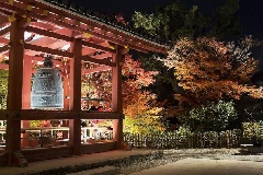 1052年に開創され、1000年近くの歴史を誇る名刹、平等院では、例年11月中旬から12月上旬にかけて、もみじなどの木々が鮮やかに色づきます。夜間の一般公開が行われるほか、庭園やミュージアム鳳翔館を中心にライトアップが施され、夜空に紅葉が浮かび上がる幻想的な景観が楽しめます。阿字池(あじいけ)の水面に映し出された鳳凰堂と真紅のもみじとの競演も、圧巻の美しさです。※鳳凰堂内部拝観はできません。