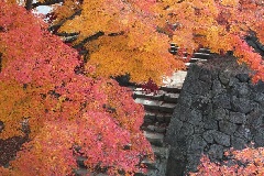 紅葉に美しく彩られた秋の津山城(鶴山公園)で、「津山城もみじまつり」が開催されます。期間中の土日は「ご当地グルメ」や音楽ステージ、お茶席などが行われます。番傘アートや紅葉ライトアップなどもあり、幻想的な秋の津山城とあわせて楽しめます。