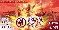 秋恒例の「ドリーム夜さ来い祭り」が、お台場・丸の内で開催されます。2025年は、「お台場Dreamプロジェクションマッピング」とコラボした迫力かつ華麗なよさこい演舞のデジタルパレードが行われるほか、史上初の歌舞伎×アニメ×祭りをテーマにした3Dホログラムショー「江戸東京プレミアムナイト」が見どころです。「正調よさこい鳴子踊り」講習・体験会があるほか、ライブ配信もありオンラインでの観覧もできます。