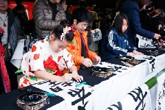 書道の神としても信仰される御祭神、菅原道真公を偲び斎行される、新年の恒例神事です。2日の「筆始祭(ふではじめさい)」では書道の上達が祈念され、2日から4日は、境内絵馬所にて神前書初め「天満書(てんまがき)」が行われます。3日には、狂言が奉納されます。
