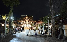 学問の神様として有名な菅原道真公を祀る全国天満宮・天神社の宗祀(総本社)にあたる北野天満宮には、例年三が日に入試を控えた受験生など約60万人の参拝者が訪れます。1月1日には「歳旦祭」、2日には「筆始祭」が斎行され、2日から4日には神前書初「天満書」、1月3日には「奉納狂言」が行われます。