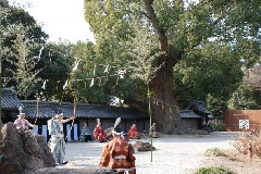 神前に捧げた矢をもって除魔招福を願う神事で、年初にあたり、農事に禍をもたらす悪霊を退散させることを目的に行われます。住吉大社では祭典の後、弓の名人が大的を射る古式に則り弓十番が催されます。