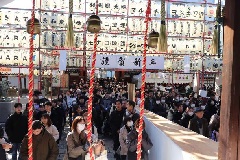 播磨国総社は家内安全、商売繁昌、縁結びなどの御利益があるとされ、正月三が日には、例年約30万人が訪れます。平安末期、播磨国内174座の神々を境内に合わせ祀り、播磨国総社と呼ばれるようになった播磨国総鎮守です。入り口に建つ「総社御門」は、幅26m、高さ16mの国内最大級の楼門です。