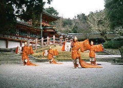 春日大社では、毎年成人の日に、林檎の庭で舞楽が奉納されます。7~8世紀頃大陸から伝来し、神事芸能として伝承されてきた舞楽です。