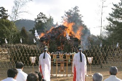 小正月の伝統行事「大とんど」が、春日大社境内の飛火野で開催されます。飛火野に火炉が設置され、正月に神社へ持ち込まれた古いお札やお守り、注連縄飾りなどが焚き上げられます。当日、会場への持ち込みも可能です。