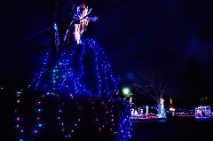 非核平和自治体宣言を行ったことを記念してつくられた三良坂平和公園が、イルミネーションで彩られ、10mのツリーを中心に幻想的な光に包まれます。園内には、平和を願うモニュメントが点在し、近隣には三良坂町出身の洋画家・柿手春三の作品を展示する「三良坂平和美術館」もあります。