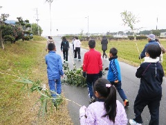 恵比須神社のある大倉戸地区では、毎年12月と2月に、子どもたちにより疫病神を追い払う伝統行事が行われます。疫病神に見立てたデックラボーと呼ばれるわら人形を椿の枝に乗せ、子どもたちが「おおくらどーのチャンチャコチャン」とお囃子を唱え、鉦(かね)を打ち鳴らしながら引き回します。デックラボーの疫病神はその間、オンビと呼ばれる笹竹で叩かれて、ぼろぼろになって村のはずれまで送られます。市の無形民俗文化財、国選択無形民俗文化財に指定されています。