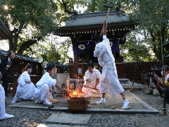 鍛冶と鋳物の神に感謝する祭事が、生國魂神社内の鞴(ふいご)神社で行われます。鞴とは製鉄や鋳造、鍛冶に使われた古式の風を送る火熾(ひおこ)しの道具で、現在でも作刀に際し伝統的な手法の鍛冶場で使用され、鞴祭は11月8日に全国の鍛冶場や製鉄所で執り行われます。祭典後には、台所や厨房などに貼って祀る「火難除けおふだ」が配られ、巫女さんより御神酒が配られます。