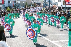 秋の収穫を感謝して、毎年11月23日に開催される柳井の秋祭りです。バタフライアリーナ周辺では、「農林水産業展」や「福祉の市」などが催され、地元の食材を使用したおいしいものが食べられます。最大の見どころは、麗都路通りで行われる「花傘おどり」で、鈴の音とともに美しい花傘の競演が繰り広げられます。
