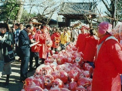 「厄除のお大師さま」として信仰を集める喜多院では、1月3日の初大師に、燃える火の中に供物を入れて不動明王を供養し、その加護を願う「不動護摩供」の儀式が行われます。境内では恒例のだるま市が催され、七転八起の開運の縁起物のだるまを求めて数十万人の参拝客が訪れます。※12月中旬から1月中旬の期間中、境内の散策はできますが、建物の拝観は休みとなります。詳細はホームページ参照
