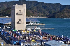 海からすぐの場所にある長島港内特設会場で、毎年恒例の「年末・きいながしま港市」が開催されます。約80ブースが軒を連ね、鮮度抜群の海産物をはじめ、紀北町の特産品などが多数揃います。