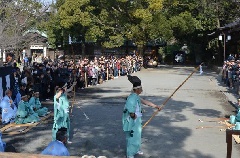 人々の悪疫と災難を祓う神事「奉射祭」が、毎年1月17日に三嶋大社で行われます。6人の射手が、代わる代わる三十三間先の大的に矢を放ち、世の邪悪を射そけ祓います。神事後の大的は災難除けのお守りとなります。