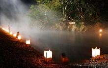 本宮町、川湯温泉の守護神「川湯十二薬師」のお祭りが行われます。川に太い綱を渡し、各戸から持ち寄った多種多様な自作の張子を吊るし、無病息災を祈願します。川湯十二薬師は、神経痛、内臓病の回復祈願にご利益があるといわれます。