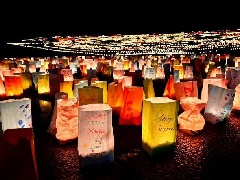 キャンドルを灯して、暖かく優しい“あかり”を演出する「うみなかキャンドルナイト」が開催されます。公募で選ばれたデザインを、みんなでつくる光の地上絵「1万本のキャンドル・アート」です。イルミネーションエリアでは、光のSL機関車や可愛らしい動物のイルミネーションを楽しめます。海の中道海浜公園ならではの、やすらぎのひと時が感じられます。