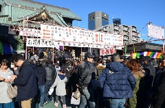 成田山新勝寺の東京別院である深川不動堂は交通安全などのご利益で知られ、元旦0時になると「修正会元朝大護摩供」が執行されます。不動尊へと続く約150mの参道は「人情深川ご利益通り」と呼ばれ、こちらも大勢の初詣客で賑わいます。