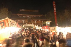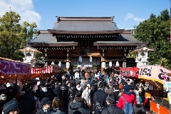 智、仁、勇の名将、楠木正成公が祀られる湊川神社は、国家安泰、情報業や流通業の発展、開運招福、厄除、家内安全にご利益があるとされ、正月三が日には例年約100万人以上が参拝します。元旦0時に初太鼓が打ち鳴らされると、一番祈祷が斎行され、巫女の神楽が奉納されます。続いて、歳旦祭(元旦7時~)、初日供祭(2日9時~)、元始祭(3日10時~)、氏子崇敬者繁栄祈願祭(7日11時~)が行われます。